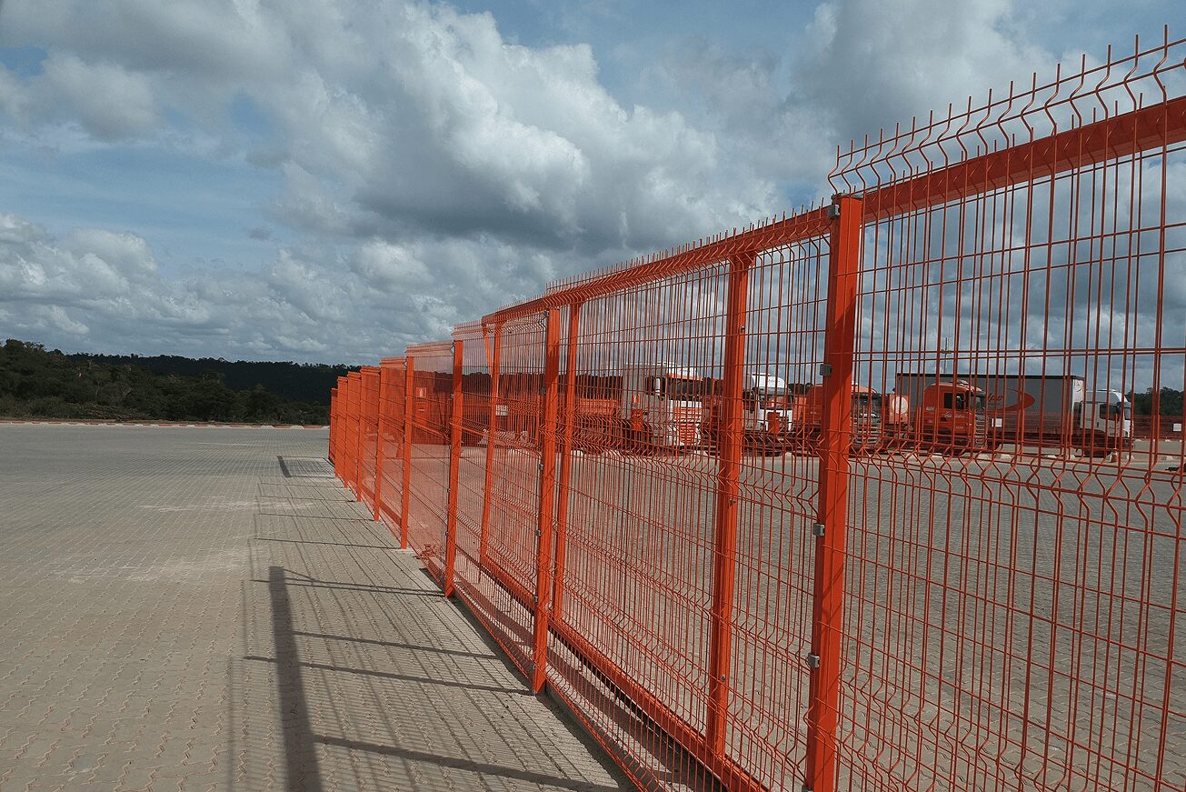• 90m² de portões em gradil também pintados na cor laranja.