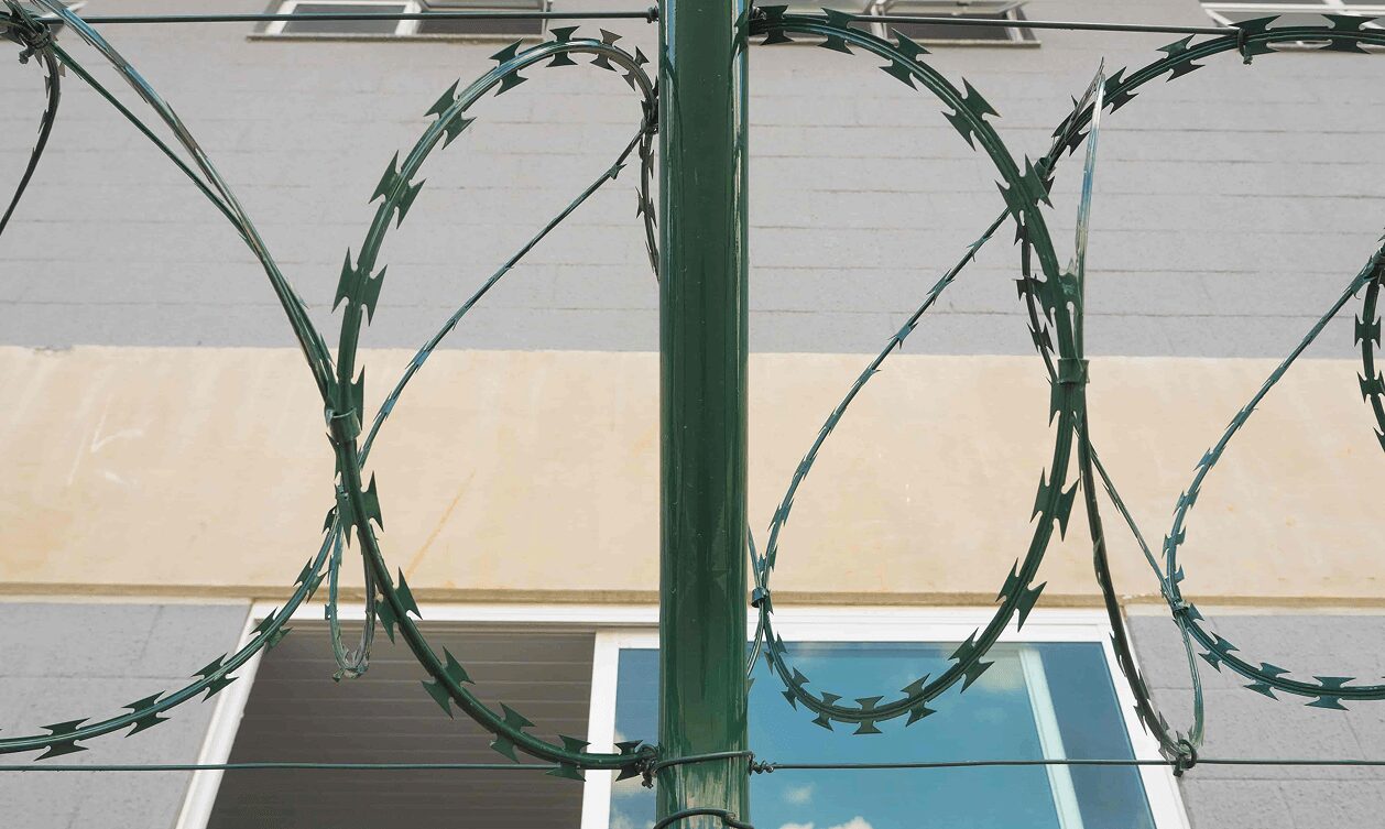 As lâminas cortantes em espiral criam uma barreira física altamente eficiente contra invasões, funcionando como um forte elemento de dissuasão.