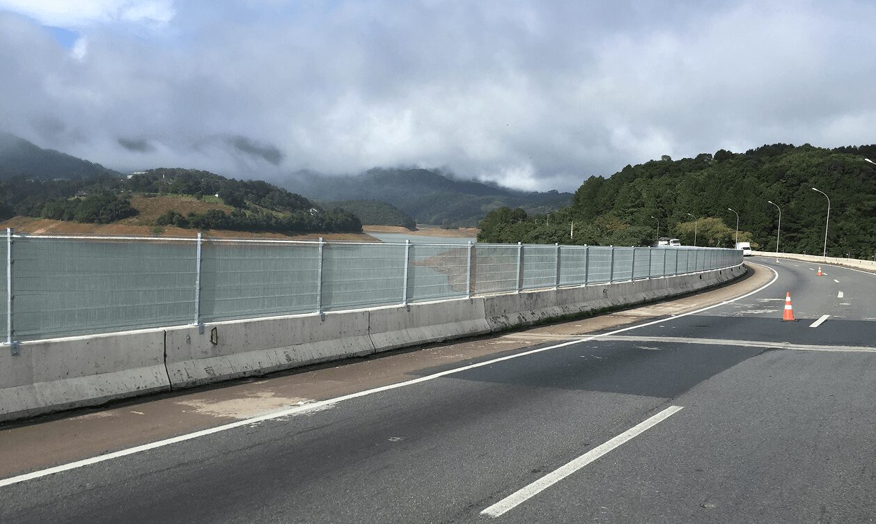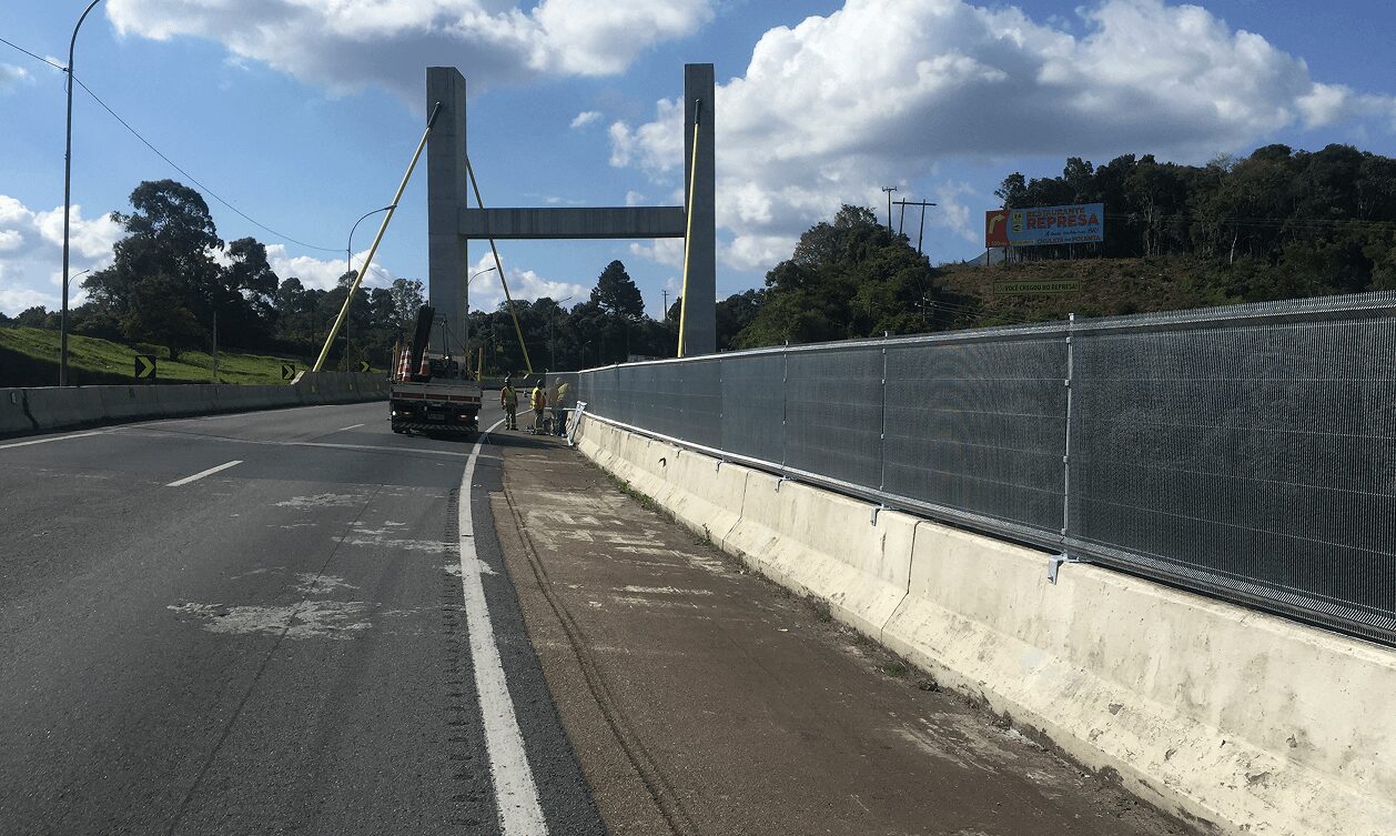 Instalado sobre barreiras de concreto, impede travessias indevidas e aumenta a segurança nas rodovias e marginais.